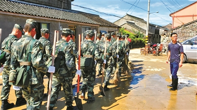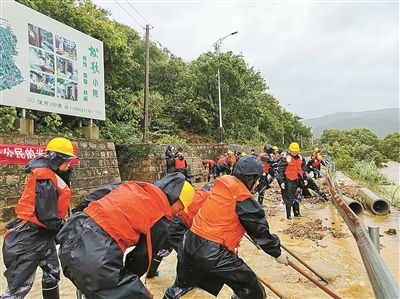 Clearing silt, moving garbage and building homes … … 215 officers and men fought for 45 hours in six mission areas, carried more than 140 tons of materials, cleared more than 2,000 cubic meters of garbage and earth and stone, eliminated 24 dangerous places and disinfected 14,000 square meters. After the rescue, the officers and men who fought continuously left in a hurry at the urging of new tasks. In the wind and rain, it is they who stick to the front line, which makes this typhoon day more stable and moving.
