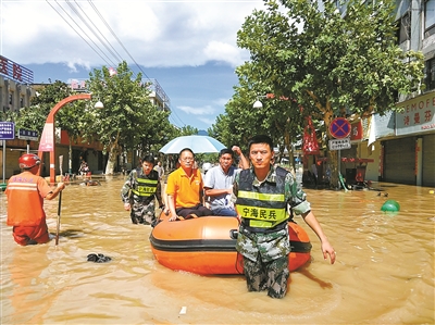 Help! Help! Help! After the arrival of the militia in our city, they quickly plunged into intense rescue operations. They ran around all night, didn’t sleep all night, but they were still in high spirits. More than 130 militiamen from Ningbo, driving 33 assault boats and 7 rubber boats, entered the old town of Linhai along the previously discovered "fast track" to carry out comprehensive rescue.