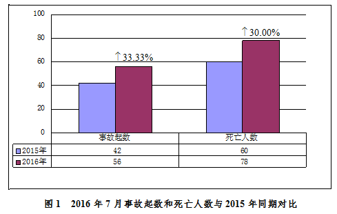 In July, 2016, there were 56 production safety accidents and 78 deaths in housing municipal engineering in China, an increase of 14 accidents and 18 deaths compared with the same period of last year, up by 33.33% and 30.00% respectively (see Figure 1).